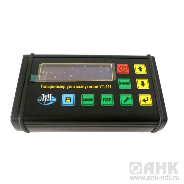Толщиномер ультразвуковой УТ-111 общего назначения по ГОСТ 28702-90, предназначен для ручного контактного измерения толщины изделий из различных металлов и сплавов, стекла, керамики, полимерных и композиционных материалов, у которых коэффициент затухания ультразвуковых колебаний на частоте 5,0 МГц не превышает 0,3 дБ/см, со скоростями распространения продольных ультразвуковых колебаний (УЗК) от 100 до 9999 м/с при одностороннем доступе к объекту измерения. Толщиномер предназначен для измерения толщины изделий с плоской и выпуклой цилиндрической поверхностями со стороны контакта с УЗ ПЭП. Толщиномер предназначен для эксплуатации в лабораторных и цеховых условиях, на предприятиях черной и цветной металлургии, в машиностроении, химической, нефтедобывающей и нефтеперерабатывающей промышленности и т.п. для контроля остаточной толщины изделий и металлоконструкций, подвергающихся коррозионному, в том числе и атмосферному воздействию. Толщиномер (при использовании соответствующих типов УЗ ПЭП) может контролировать остаточную толщину изделий и металлоконструкций, находящихся под водой: обшивки корпусов судов и плавучих технических средств, стальные листовые и панельные элементы гидротехнических сооружений, трубопроводы, дюкерные переходы и т.п.